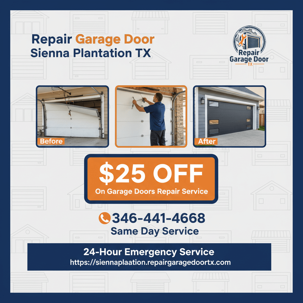 To determine whether repairs or replacements are more dependable, Repair Garage Door Sienna Plantation TX does comprehensive system examinations. Frequently, we can increase important components to extend the overhead door's lifespan without having to replace it entirely.